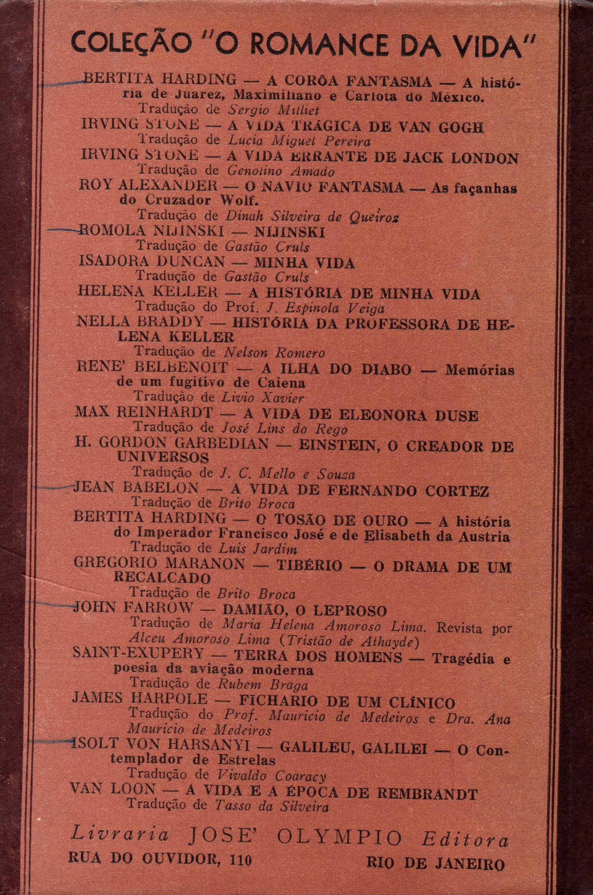 Libro que perteneció a la biblioteca personal de Gabriela Mistral, donada por Doris Dana a Barnard College, Universidad de Columbia, institución donde Gabriela Mistral se desempeñó como profesora visitante entre los años 1930-1931. El año 2007, Barnard College, a través de Doris Atkinson, dona esta colección completa al Estado de Chile. El año 2010, la colección es transferida al Museo Gabriela Mistral de Vicuña.