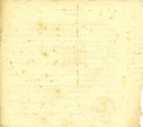Bidimensional de formato rectangular. Compuesto por una hoja color blanco, con letras mecanográficas e impresas color azul y manuscritas color negro. Presenta una marca de timbre con escudo y letras.