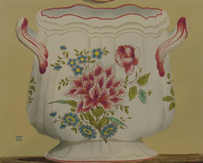 Publicado en "Histoire générale de la faïence ancienne française et étrangère considérée dans son histoire, sa nature, ses formes et sa décoration" en Paris-Amiens entre 1874-1876. Fueron 2 volúmenes in folio con 200 planchas de color retocadas a mano.