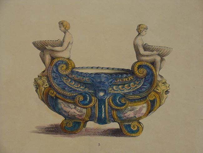 Publicado en "Les arts décoratifs à toutes les époques" por A. Morel, en Paris 1870. Se trata de 2 volúmenes con litografías impresas por Lemercier y Compañía.