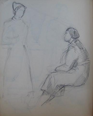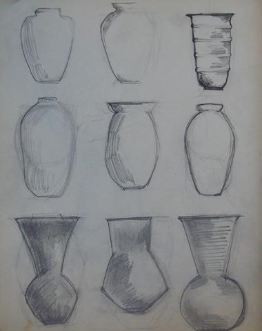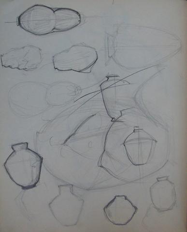 Cuaderno de dibujos de formato rectangular en posición vertical. Se representan composiciones sencillas, estudios y repeticiones de estas, de línea suelta y algunas inscripciones manuscritas al final.