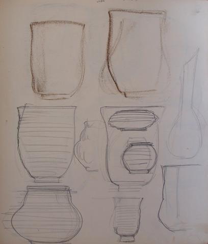 Cuaderno de dibujos de formato rectangular en posición vertical. Se representan composiciones sencillas, estudios y repeticiones de estas, de línea suelta y algunas inscripciones manuscritas al final.