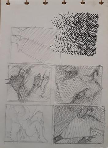 Cuadernillo de croquis no anillado compuesto por 70 hojas de papel bond blanco. En todas ellas es posible encontrar croquis figurativos pertenecientes a distintas obras de Valentina Cruz, además de inscripciones manuscritas alusivas a los dibujos, a clases de arte y anotaciones personales.