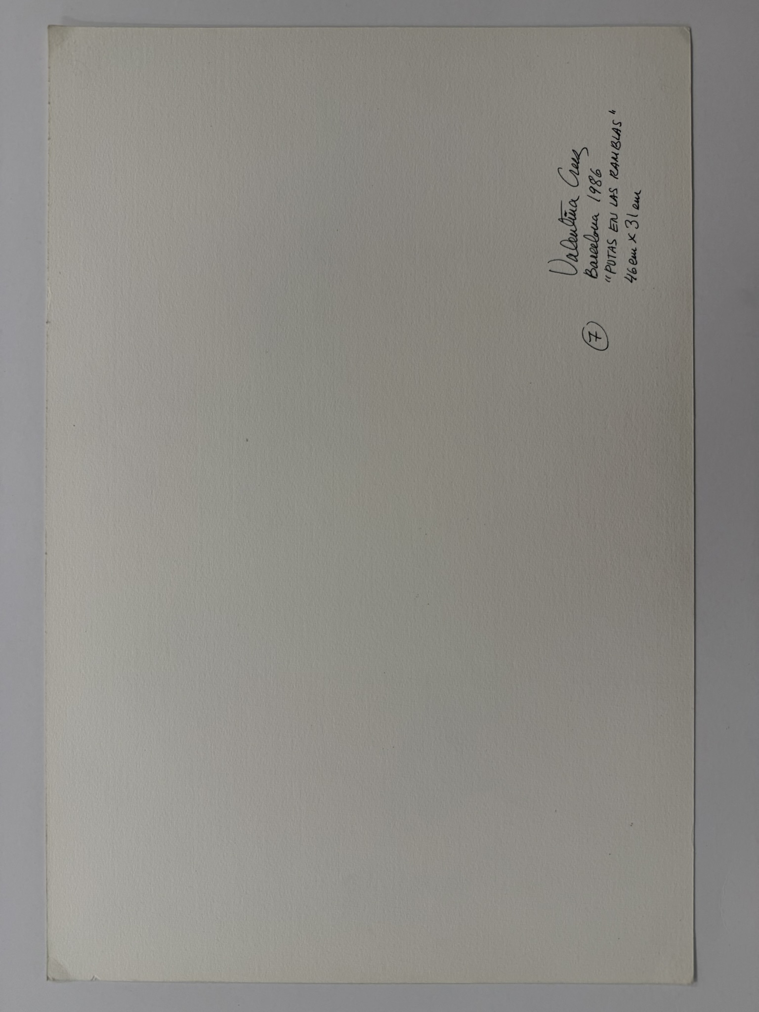 Obra legada por Valentina Cruz al MNBA en 2025. Este dibujo fue realizado a mediados de la década de 1980 en la ciudad de Barcelona, donde la artista se radicó con posterioridad al golpe de Estado ocurrido en Chile en 1973. La serie "Las Ramblas" representa diversos personajes y escenas del conocido paseo homónimo de la ciudad catalana.