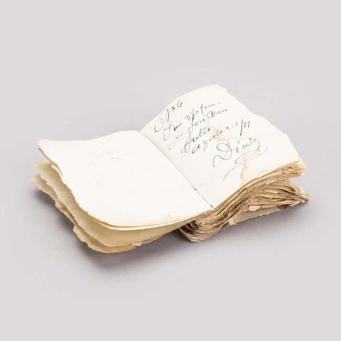 Cuaderno o libro pequeño destinado a escribir en él anotaciones o cuentas. Esta libreta fue compaginada artesanalmente