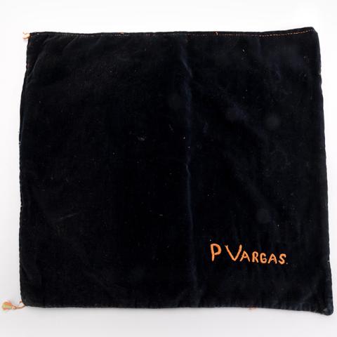 Objeto textil, estandarte de terciopelo color azul con letras amarillas bordadas que señalan: 2 N. Sra. Candelaria C. Pinto Febrero 2 de 1940. Tiene decoración de flores. Al reverso tiene bordado: P Vargas.