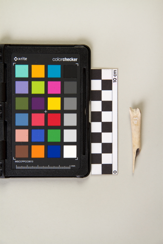 Objeto oblongo óseo hueco o ahuecado. Un extremo biselado y aguzado, el opuesto con la terminación propia del hueso. Superficie pulida. Corresponde a un instrumento para perforar o extraer el material de un objeto.