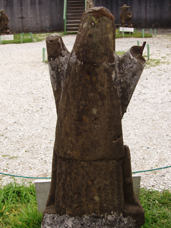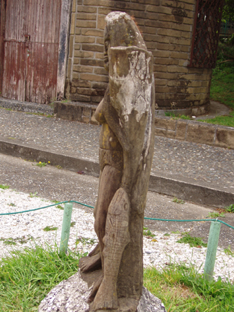 Escultura tallada por José Segundo Ampuero Maldonado en ca. 1980, por solicitud de Abel Macías, director del Museo Regional de Ancud, para formar parte del Patio de la Mitología, ya que la escultura anterior había sido dañado.