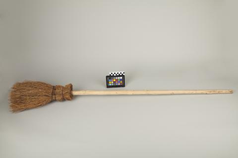 Objeto utilitario de uso doméstico usado para barrer superficies. Está compuesto por un mango largo de madera de forma cilíndrica adherido en uno de sus extremos a un conjunto de hebras de fibra vegetal de color anaranjada unidas con alambre. Algunas de las fibras aún mantienen la corteza.