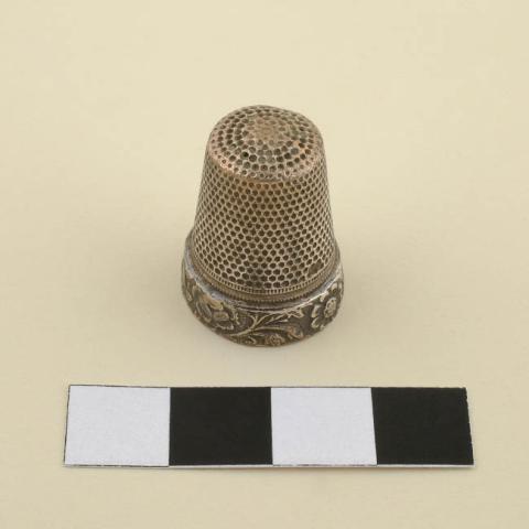 Objeto cónico extremo superior recortado. Superficie con pequeños circulos bajo relieve; extremo inferior más ancho, lleva franja con decoración fitomorfa.
