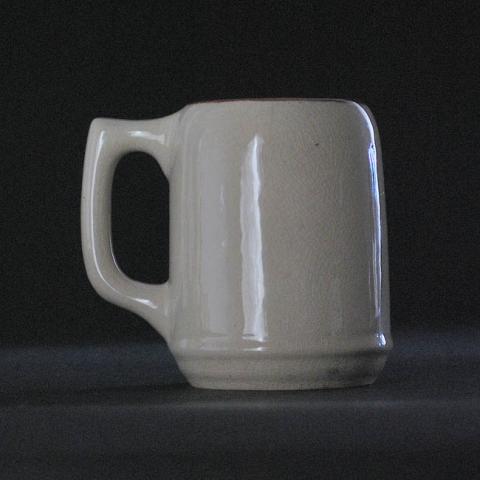Objeto utilitario. Recipiente de volumen cilindríco, de boca amplia, paredes rectas y cuerpo regular; presenta un asa lateral, de forma rectilinea. Extremo inferior, se eleva sobre un pequeño zocalo de pie circular, plano. Decoración, presenta una figura masculina sobrerelieve, acabado en esmalte transparente en toda la superficie