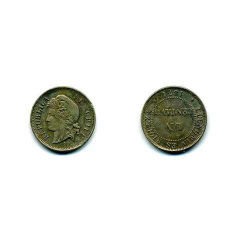 REPUBLICA DE CHILE So (perfil femenino a la izquierda)/ECONOMIA ES RIQUEZA UN CENTAVO 1871 (entre estrellas)
