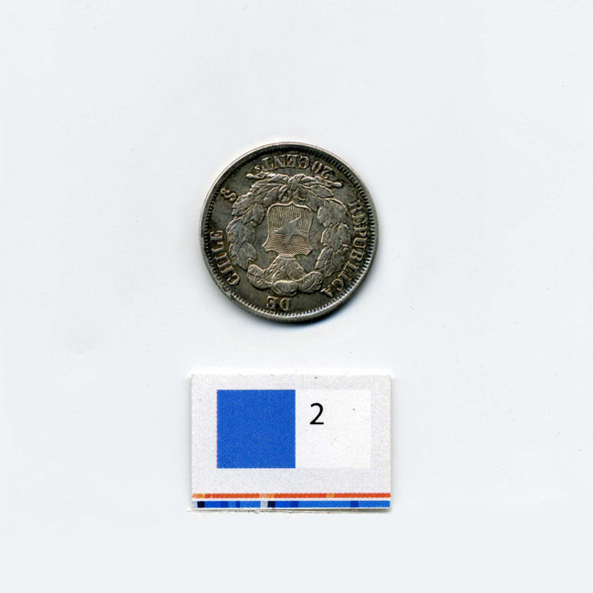 Circuló entre 1863-1867, se emitieron 4.298.000 ejemplares. Este nuevo diseño unificó los existentes para pesos y centavos ya que en ambas el cóndor tenía posturas distintas. El cóndor con restos de eslabones de cadena en el pico y en sus garras, está de pie sosteniendo con una de sus garras un escudo oval, al centro el haz de los lictores romanos rodeado de trece estrellas que representan las provincias de Chile.