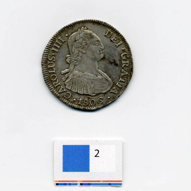 (Busto Carlos IV a la derecha) CAROLUS.IIII. DEI. GRATIA. 1806/ (Escudo Coronado de los Borbones entre columnas de Hércules, con inscripción PLVS VLTRA) HISPAN.ET IND. REX So 4R. D.A.