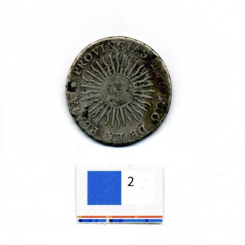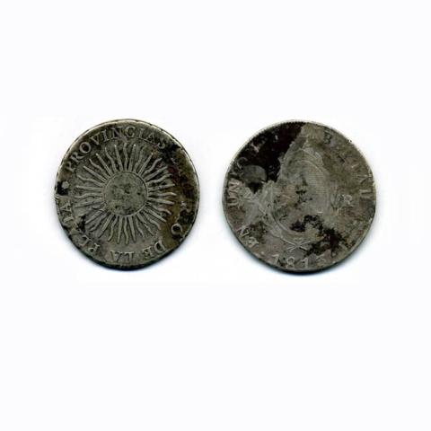 Ésta fue la primera moneda con el sello de la patria y argentina acuñada en Potosí (1813-1815)