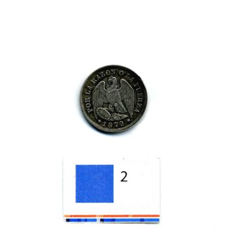 Circuló entre 1867-1880, fueron acuñados 288.000 ejemplares. Este nuevo diseño unificó los existentes para pesos y centavos ya que en ambas el cóndor tenía posturas distintas. El cóndor con restos de eslabones de cadena en el pico y en sus garras, está de pie sosteniendo con una de sus garras un escudo oval, al centro el haz de los lictores romanos rodeado de quince estrellas que representan las provincias de Chile, tiene variantes con 13 y 14 estrellas.