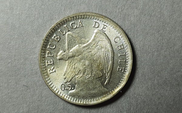 Moneda circular con un cóndor en anverso, tiene alas desplegadas y está parado sobre una roca con la leyenda: República de Chile. Reverso tiene corona de laurel que en la parte inferior tiene una hoz y un martillo, en la parte superior entre sus puntas tiene la marca de ceca. En el centro denominación y año.