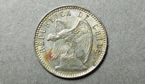 Moneda circular con un cóndor en anverso, tiene alas desplegadas y está parado sobre una roca con la leyenda: República de Chile. Reverso tiene corona de laurel que en la parte inferior tiene una hoz y un martillo, en la parte superior entre sus puntas tiene la marca de ceca. En el centro denominación y año.