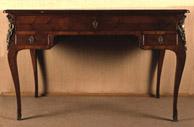 Las mesas para escritura son escritorios de superficies planas sobre patas largas, que generalmente toman la forma de una mesa con un largo cajón en el faldón. Muy usados en el siglo XIX e inicios del XX.