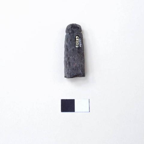 Fragmenteo de pesa de forma cilindrica, un extremo romo y levemente más delgado que el otro, con una estría transversal circunvalar. Bordes alisados.