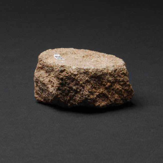 Objeto de uso probablemente ritual. Tiene forma cuadrangular irregular de sección plana. Está fabricada en piedra tallada de color marrón. Superficie rugosa.