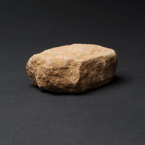 Objeto de forma rectangular, ambas caras planas.Bordes rectos e irregulares. Un extremo levemente en punta por rebaje abrasivo.
