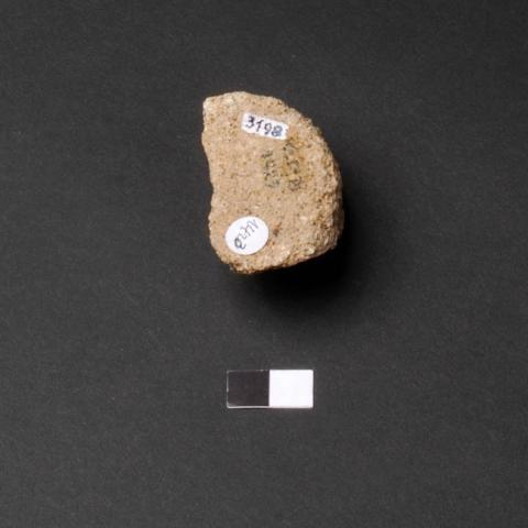 Cuerpo quebrado longitudinal y transversal, de forma rectangular. Ambas caras planas y los bordes rectos, superficie alisada.