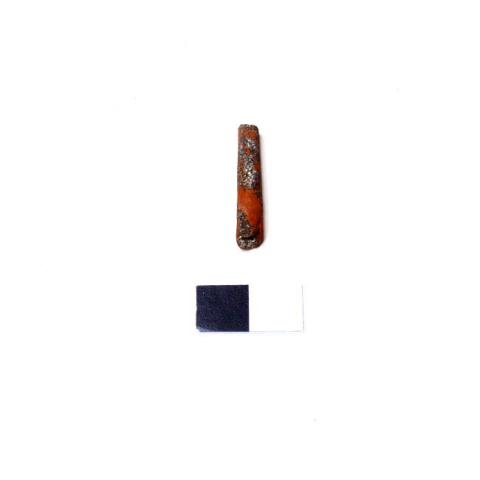 Fragmento cilíndrico de hueso con un extremo levemente más grueso que el otro. Cuerpo pulido, ambos extremos quebrados. Color cafe.