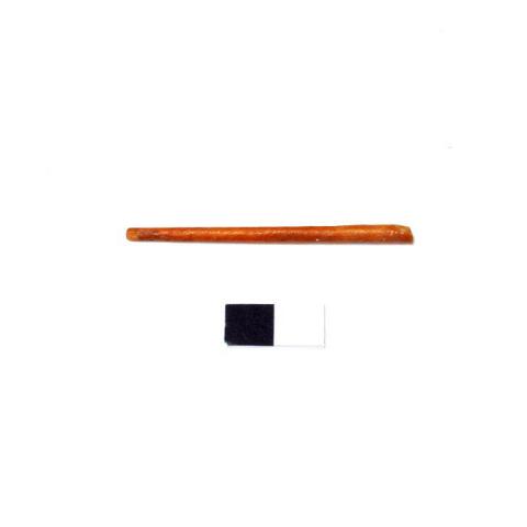 Objeto de hueso con forma cilíndrica. Ambos extremos quebrados, uno de ellos más delgado, cuerpo pulido. Posible palillo. Color cafe claro.