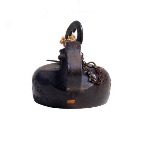 Esta lámpara de aceite manual, con serie de fabricación, fue utilizada tanto en la faena minera como en los campamentos de las oficinas salitreras y los puertos del norte durante el novecientos; prestaba gran utilidad en la iluminación de socavones, tiendas de campaña e inmuebles de aquella época.