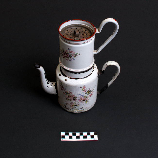 Cuerpo superior con forma recta redondeada un asa vertical grande y un filtro interior.