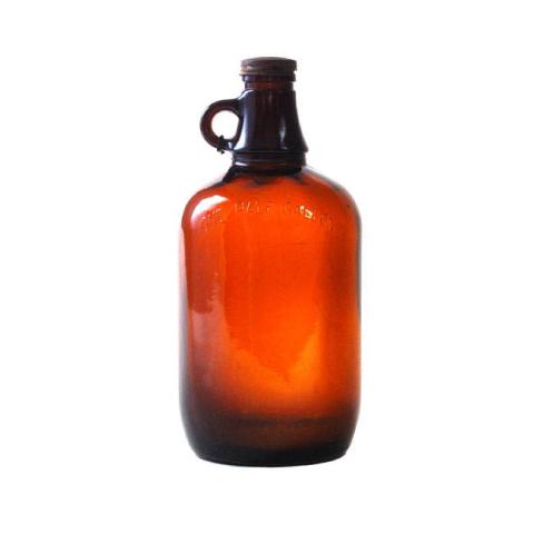 Vasija de vidrio, con cuerpo abultado y base plana; cuello mediano, estrecho y angosto con asa semi circular unida al gollete.