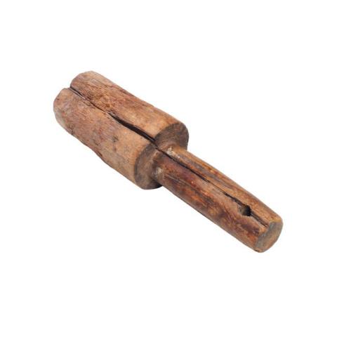 Herramienta de percusión de madera, de aspecto marrón claro, compuesta de una cabeza cilíndrica y una empuñadura, corta de forma tubular.