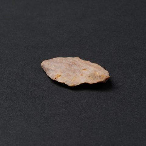 Entera, formma elipsoidal, doble punta con insinuación de pedunculo, lados convexos, caras planas. Lascado bifacial y bimarginal doble con escaso retoque marginal. Corte transversal plano elipsoidal. Punta probablemente en proceso.