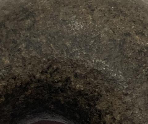 Instrumento lítico de forma cilíndrica con los extremos redondeados y perforación bicónica en el sector central. Elaborado en piedra tallada y pulida de color grisáceo.