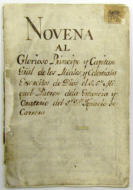 Novena al Glorioso principe y capitán gral. De los reales y celestiales ejercitos de Dios el S. Sn. Miguel Patron de la estancia y oratorio del S.V. Dn Ygnacio de Carrera