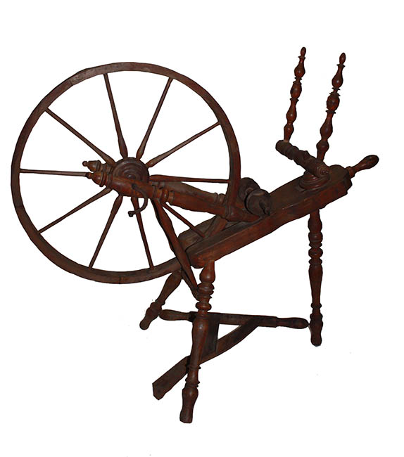 Instrumento mecánico compuesto principalmente por un pedal, una rueda y una correa. Su función es transformar fibras textiles en hilo a través de la torsión y el enrollado. El pedal acciona la rueda, lo que provoca que la fibra se tuerza y que el hilo resultante se almacene en una bobina.