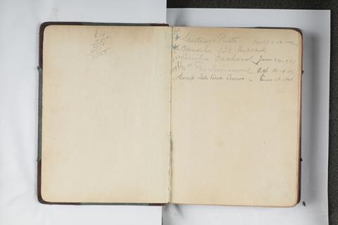 Objeto de forma rectangular en disposición vertical, de tapas duras color verde, lomo y esuinas negros de cuero, hojas color beige enumeradas con lineados en color rojo y azul. 268 páginas.