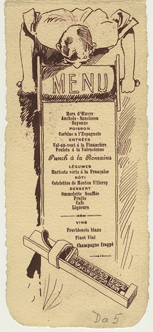 Menú de comida realizado por el Gerente de la Imprenta Barcelona a su socio, jefes y empleados