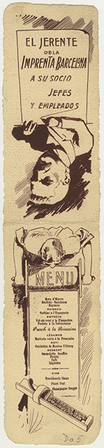 | Título: | Menú de comida realizado por el Gerente de la Imprenta Barcelona a su socio, jefes y empleados |