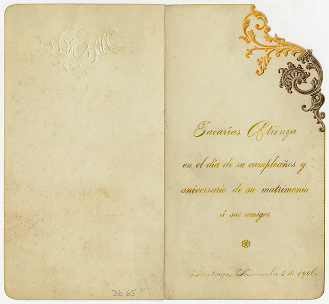 | Título: | Menú ofrecido por Zacarías Atienza con motivo de su cumpleaños y su noveno aniversario de matrimonio |