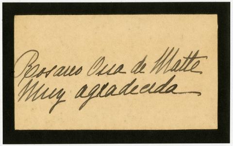 | Título: | Tarjeta de luto en agradecimiento a Carlos Cruz Eyzaguirre y Señora, de Rosario Ossa de Matte |
