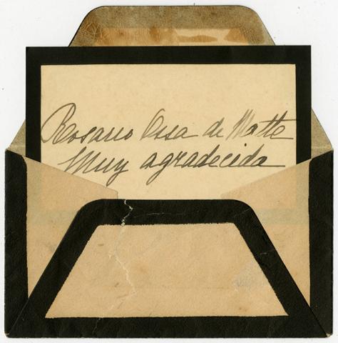 | Título: | Tarjeta de luto en agradecimiento a Hipolito Serrano Gana y Señora, de Rosario Ossa de Matte |