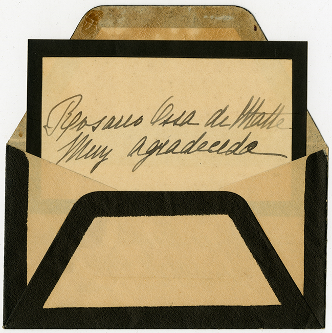 | Título: | Tarjeta de luto en agradecimiento a Alamiro Montes Mackenna, de Rosario Ossa de Matte |