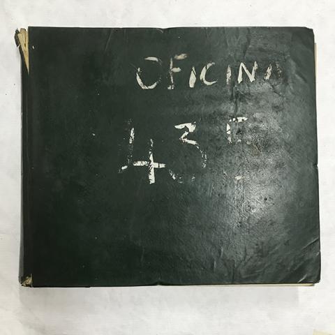 Objeto rectangular. De tapas duras, forrado en cuero sintético (PVC) de color verde oscuro, hojas lineadas y numeradas. Formato horizontal.