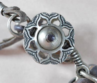 Pieza metálica utilizada para gobernar a la caballería; está formada por un aro amplio y una pieza paralela de la que penden una arco y una serie de argollas desde ambos extremos, con un par de cuerdas extensa. La pieza corresponde a un freno y cabezada de ejecución mapuche, con campanas laterales perforadas, tubos embutidos en el correaje reforzado con aplicaciones metálicas..