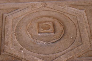 Mobiliario para almacenar valores, es una estructura metálica, de volumen en prisma rectangular. El panel superior es una tapa móvil, en la superficie presenta un relieve con decoraciones geométricas en sus cuatro caras y en su parte superior. Al frente tiene una reserva donde llevaba la cerradura. El cuerpo tiene ángulos y perfil rectilíneo; la base es rectangular y llana.