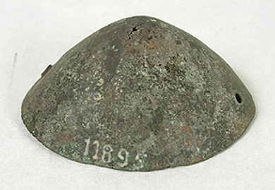 Este disco de cobre es una parte de un freno de rienda de caballo. Procedente de Llaima, Araucanía.