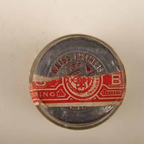 Objeto de uso farmaceutico. Recipiente traslúcido cilíndrico liso con tapa circular con inscripción en sobrerrelieve. En el sector central, etiqueta con inscripción; en horizontal y desde el recipiente franqueando y por sobre la tapa, etiqueta con inscripción. Presencia de sales blancos en el interior.