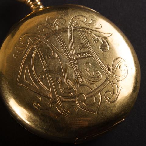 Este reloj diseñado especialmente para el mercado hispano posee punteros estilo Pica Fuerte y Látigo en oro, en la parte interior de la tapa aparecen las inscripciones propias del reloj, el número de caja, procedencia, certificación del oro de 18 k y el nombre del fabricante. Posee una llave de registro para regular los tiempos cada vez que se atrase o adelante el reloj. La tapa posterior muestra un monograma de fábrica. Sabemos que este reloj fue reparado en 1971 en la Relojería Tic Tac de Santiago, gracias a que el interior de la caja existe una marca milimétrica realizada por la persona que lo reparó, algo que solían hacer los relojeros calificados.